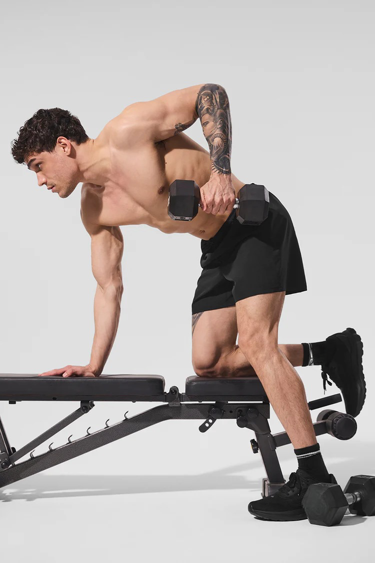 Quần short đen thể thao nam của chúng tôi được may từ vải Tactel 100% polyester cao cấp, mang lại sự thoải mái và độ bền cao với kiểu dáng hiện đại, ôm sát. Quần có cạp chun, dây buộc phía trước, hai túi bên hông và một túi sau. Một sản phẩm cực kỳ thoải mái cho trang phục hàng ngày, phù hợp với mọi dịp.